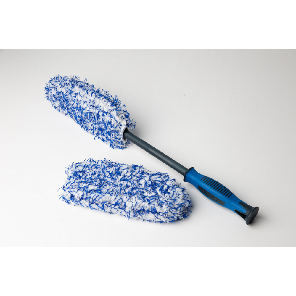 Το υψηλής ποιότητας κάλυμμα από μικροΐνες εφαρμόζει άψογα στη λαβή και παραμένει τέλεια στη θέση του χάρη στον έξυπνο σχεδιασμό του. Οι υψηλής ποιότητας μικροΐνες αφαιρούν αποτελεσματικά την επίμονη βρωμιά και τη σκόνη φρένων, ενώ η εργονομική, αντιολισθητική λαβή εξασφαλίζει άνετο και ασφαλές κράτημα κατά τον καθαρισμό. Το σετ περιλαμβάνει 2 πλενόμενα καλύμματα μικροϊνών.