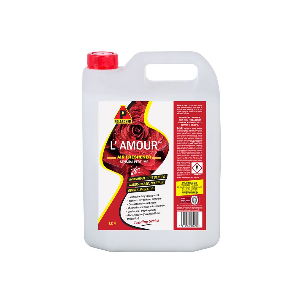 Αρωματικό χώρου L’AMOUR. Ακαταμάχητο άρωμα, με μεγάλη διάρκεια. Φρεσκάρει οποιαδήποτε επιφάνεια, οπουδήποτε. Αναζωογονεί τις αισθήσεις. Καταπολεμά τις δυσάρεστες οσμές. Διακριτικό και ευχάριστο άρωμα. Δεν αφήνει λεκέδες. Βιοδιασπώμενο (EUR).
